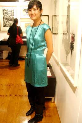 If ever you want an exercise in distraction, get yourself along to a large event promoting art such as Art Melbourne07- I didn’t know where to look the entire night being surrounded by inspiring art work, and just as inspiring and stylish women. There is literally so much to see it can be quiet confusing, particularly when the bar runs out of glasses and god forbid there is no wine at an art show, but I digress. When I wasn’t checking out Kate Bergins beautiful still life’s of telephones and butterflies at Mahoney’s Gallery, or Carey O’Grady’s hyper real/surrealist work like ‘Dog on Horse,’ at Pivotal, I had time to come across these beautiful gals who were refreshingly interesting and effortlessly oozed confident style, something you don’t always come across on the street every day: