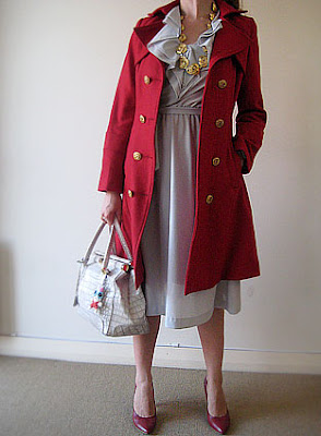 Vintage dress from eBay, coat from La Femme, vintage necklace from Out of the Closet,