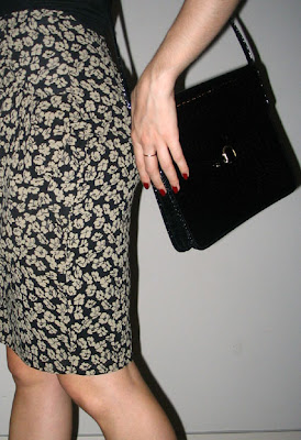 Floral skirt is vintage Miss Selfridges and has a lovely ruching detail on the hip that because of the print is virtually impossible to capture on film. It was reduced for no apparently reason to $2.75. I didn’t ask, I just bought.
