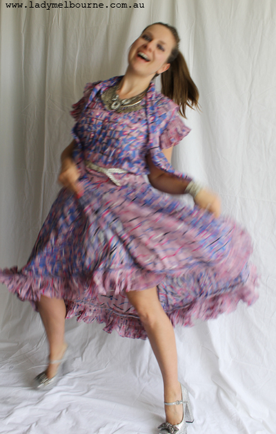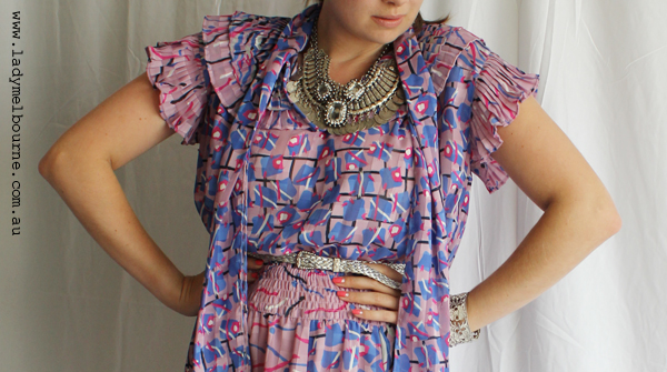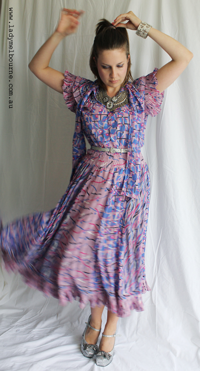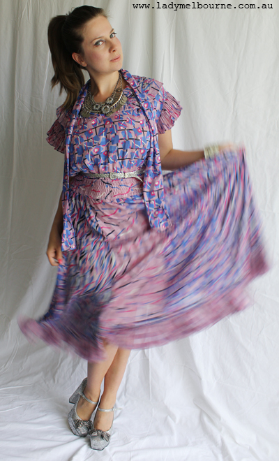 Man I really, really love Diane Freis vintage dresses. This is my third and I have another two that I’m um’ing and ah’ing about at the moment. They offer so much- colour, pleats, clashing prints, sashes, frills so that there is sort of something for everyone. I’m hoping to meet with her when I visit Hong Kong in January- that would be the ultimate interview for me!