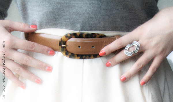 […] I’m wearing: Top: Millers Skirt: Laura Ashley Belt: Sportscraft Necklace: Imagination on Swanston St Manicure: Miss Fox […]