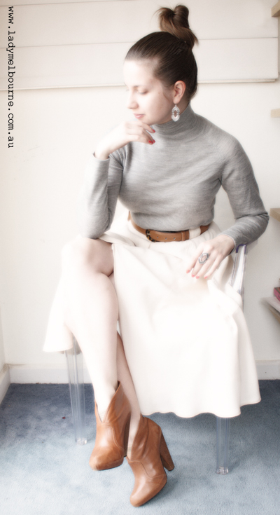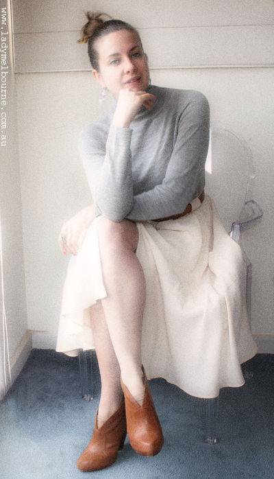 Trundling down Church St in Brighton the other day I noticed that Laura Ashley was having a sale. I’ve always had a soft spot for this British label, mainly because it’s, well, British and fuses another love of mine: Liberty prints. Anyhow I thought I’d pop in to see what was on offer and I picked up this merino wool sweater and crepe skirt for a grand total of $177.
