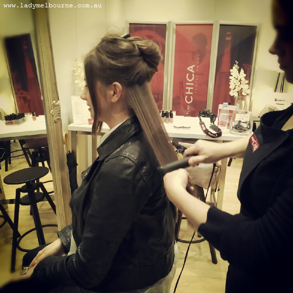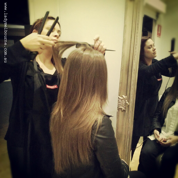 And last but not least it was on to making my hair sleek and straight looking. You are welcome to DIY as part of the powder room service for $5, but they will also straighter or curl as you can see in these photos for $35.
