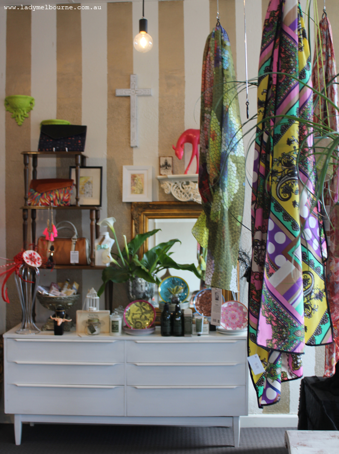 There is much more to see than clothes however in this treasure trove on Upper Heidelberg Rd, where you’ll find jewellery, candles, sunglasses, clothing, bags, scarves and other lovely things for the home. I sort of felt as though I’d walked into someones opulent dressing room with little vignettes of jewellery and clothes curated by Estelle herself.