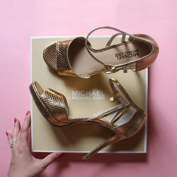 I also realised that I didn’t own a pair of gold heels and that I needed to – STAT! They seem to compliment whatever she’s wearing (and let me tell you aside from her talent as an illustration the woman has serious fashion chops) so I found my own pair courtesy of MICHAEL Michael Kors. I have to admit, with my pregnancy advancing I may not get as much wear out of them as I usually would coming in to spring and summer, but they’re something to look forward to post-bump.